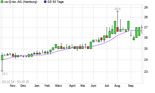 Mit dem Anstieg auf 27,20 EUR hat die va-Q-tec-Aktie am 02.10.2025 die 50-Tage-Linie nach oben gekreuzt.Die va-Q-tec-Aktie befindet sich seit dem 29.08.2024 im langfristigen Aufwärtstrend und ...weiterlesen