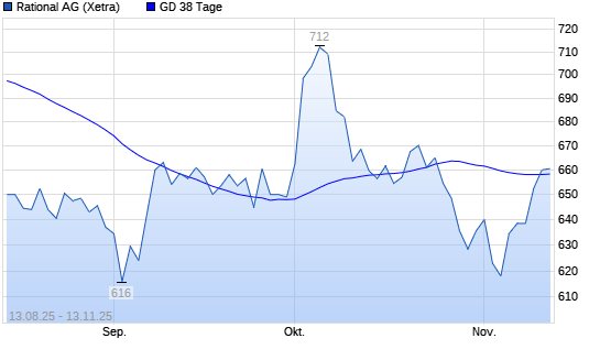 Mit dem Rücksetzer auf 658,50 EUR hat die Rational-Aktie am 12.11.2025 die 38-Tage-Linie nach unten gekreuzt.Die Rational-Aktie befindet sich seit dem 07.03.2025 im langfristigen Abwärtstrend ...weiterlesen