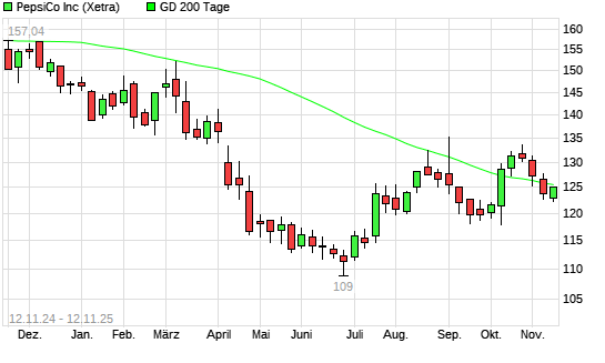 Mit dem Anstieg auf 125,52 EUR hat die PepsiCo-Aktie am 11.11.2025 die 200-Tage-Linie nach oben gekreuzt.Die PepsiCo-Aktie befand sich seit dem 03.11.2025 im langfristigen Aufwärtstrend und ...weiterlesen