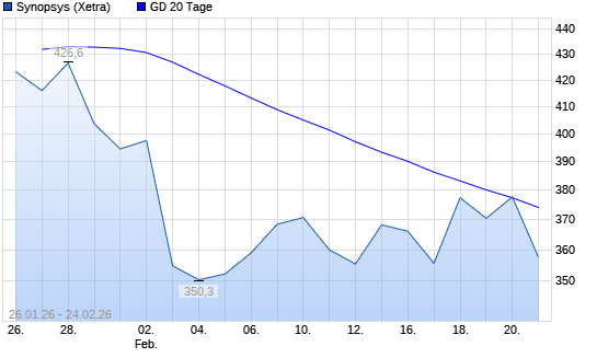 Mit dem Rücksetzer auf 360,80 EUR hat die Synopsys-Aktie am 23.02.2026 die 20-Tage-Linie nach unten gekreuzt.Die Synopsys-Aktie befindet sich seit dem 26.01.2026 im ...weiterlesen