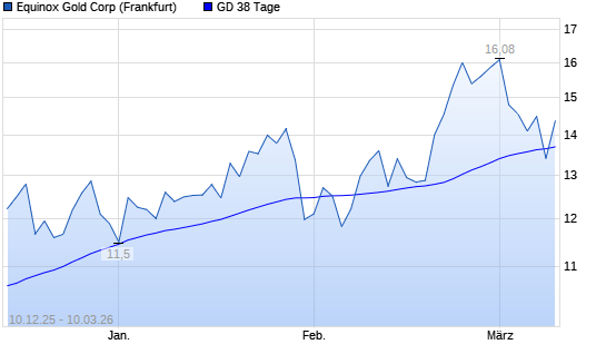 Mit dem Rücksetzer auf 13,41 EUR hat die Equinox Gold-Aktie am 09.03.2026 die 38-Tage-Linie nach unten gekreuzt.Die Equinox Gold-Aktie befindet sich seit dem 12.08.2025 ...weiterlesen