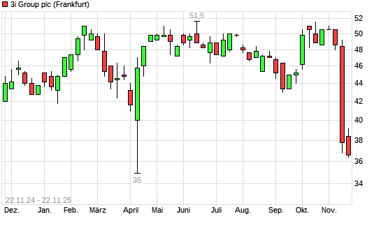 Mit dem Rücksetzer auf 36,60 EUR hat die 3i Group-Aktie (ISIN GB00B1YW4409) am 21.11.2025 ein neues 6-Monats-Tief erreicht und damit den Kurs vom 18.11.2025 eingestellt.Die 3i Group-Aktie ...weiterlesen