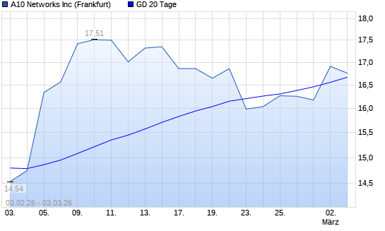 Mit dem Anstieg auf 16,91 EUR hat die A10 Networks-Aktie am 02.03.2026 die 20-Tage-Linie nach oben gekreuzt.Die A10 Networks-Aktie befindet sich seit dem 05.02.2026 im ...weiterlesen