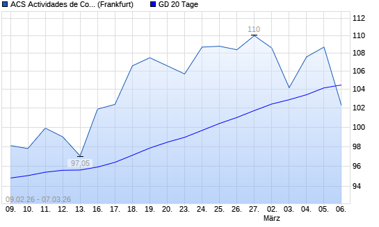 Mit dem Rücksetzer auf 102,30 EUR hat die ACS Actividades de Construccion y Servicios SA-Aktie am 06.03.2026 die 20-Tage-Linie nach unten gekreuzt.Die ACS Actividades de ...weiterlesen