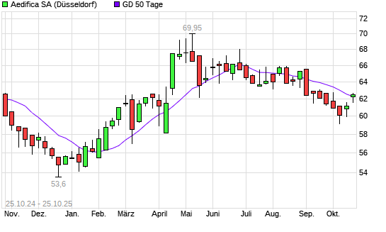 Mit dem Anstieg auf 62,95 EUR hat die AEDIFICA-Aktie am 24.10.2025 die 50-Tage-Linie nach oben gekreuzt.Die AEDIFICA-Aktie befindet sich seit dem 02.10.2025 im langfristigen Aufwärtstrend und ...weiterlesen