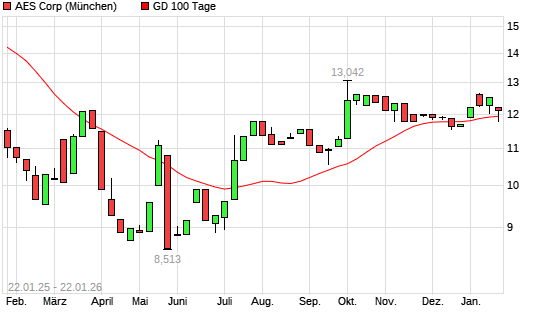 Mit dem Anstieg auf 12,20 EUR hat die AES-Aktie am 21.01.2026 die 100-Tage-Linie nach oben gekreuzt.Die AES-Aktie befindet sich seit dem 19.09.2025 im langfristigen Aufwärtstrend und hat in ...weiterlesen