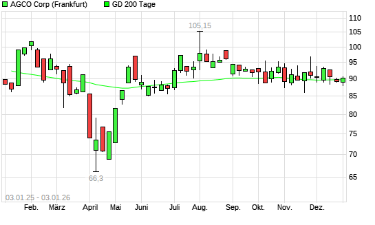 Mit dem Anstieg auf 90,16 EUR hat die AGCO-Aktie am 02.01.2026 die 200-Tage-Linie nach oben gekreuzt.Die AGCO-Aktie befand sich seit dem 23.12.2025 im langfristigen Abwärtstrend und hat ...weiterlesen