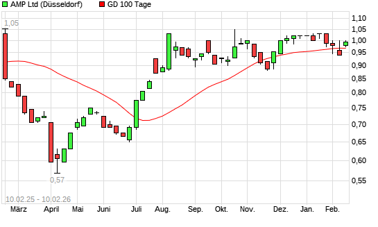 Mit dem Anstieg auf 0,97 EUR hat die AMP-Aktie am 09.02.2026 die 100-Tage-Linie nach oben gekreuzt.Die AMP-Aktie befindet sich seit dem 15.07.2025 im langfristigen Aufwärtstrend und hat in diesem ...weiterlesen