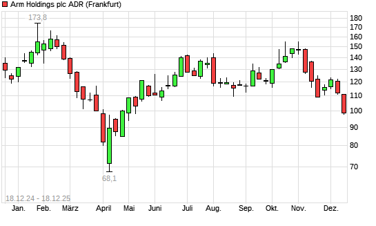 Mit dem Rücksetzer auf 97,50 EUR hat die ARM Holdings-Aktie (ISIN US0420682058) am 17.12.2025 ein neues 6-Monats-Tief erreicht und damit den Kurs vom 16.12.2025 eingestellt.Die ARM Holdings-Aktie ...weiterlesen