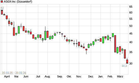 Mit dem Rücksetzer auf 30,40 EUR hat die ASGN-Aktie (ISIN US00191U1025) am 19.03.2026 ein neues 5-Jahres-Tief erreicht und damit den Kurs vom 18.03.2026 eingestellt.Die ...weiterlesen