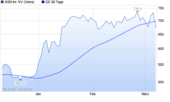 Mit dem Rücksetzer auf 677,00 EUR hat die ASM International-Aktie am 06.03.2026 die 38-Tage-Linie nach unten gekreuzt.Die ASM International-Aktie befindet sich seit dem 02.12.2025 ...weiterlesen