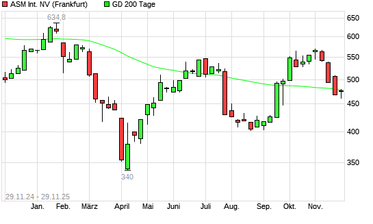 Mit dem Rücksetzer auf 474,40 EUR hat die ASM International-Aktie am 28.11.2025 die 200-Tage-Linie nach unten gekreuzt.Die ASM International-Aktie befand sich seit dem 27.11.2025 im langfristigen ...weiterlesen