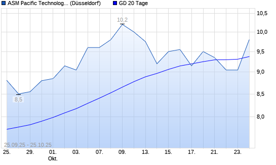 Mit dem Anstieg auf 9,85 EUR hat die ASM Pacific Technology-Aktie am 24.10.2025 die 20-Tage-Linie nach oben gekreuzt.Die ASM Pacific Technology-Aktie befindet sich seit dem 05.09.2025 im langfristigen ...weiterlesen