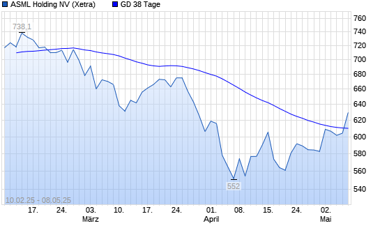 Mit dem Anstieg auf 609,80 EUR hat die ASML Holding-Aktie am 07.05.2025 die 38-Tage-Linie nach oben gekreuzt.Die ASML Holding-Aktie befindet sich seit dem 22.08.2024 im ...weiterlesen