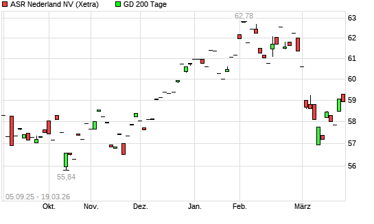 Mit dem Anstieg auf 58,60 EUR hat die ASR Nederland-Aktie am 18.03.2026 die 200-Tage-Linie nach oben gekreuzt.Die ASR Nederland-Aktie befand sich seit dem 11.03.2026 im ...weiterlesen