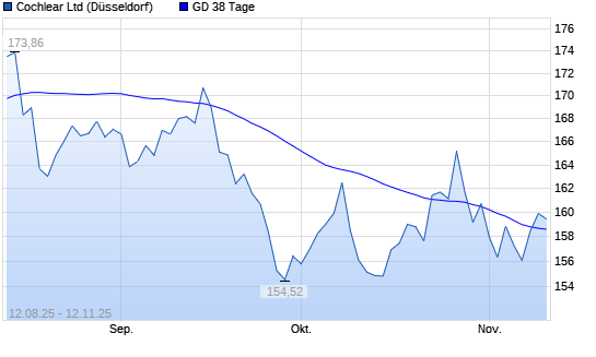 Mit dem Anstieg auf 160,60 EUR hat die Cochlear-Aktie am 11.11.2025 die 38-Tage-Linie nach oben gekreuzt.Die Cochlear-Aktie befindet sich seit dem 30.10.2025 im langfristigen Abwärtstrend und ...weiterlesen