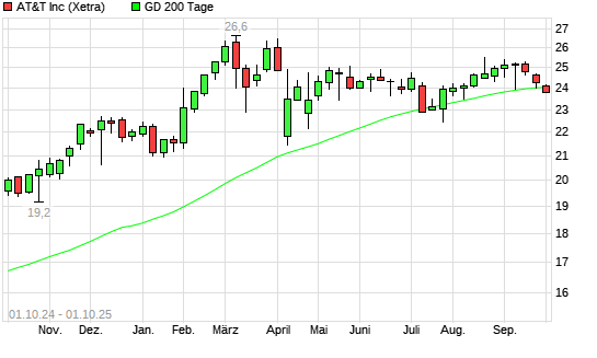 Mit dem Rücksetzer auf 21,02 EUR hat die AT&T-Aktie (ISIN US00206R1023) am 09.12.2025 ein neues 6-Monats-Tief erreicht und damit den Kurs vom 23.10.2025 eingestellt.Die AT&T-Aktie befindet ...weiterlesen