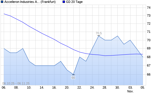 Mit dem Rücksetzer auf 68,00 EUR hat die Accelleron Industries AG-Aktie am 05.11.2025 die 20-Tage-Linie nach unten gekreuzt.Der Abstand zur 200-Tage-Linie beträgt aktuell +0,00%. ...weiterlesen