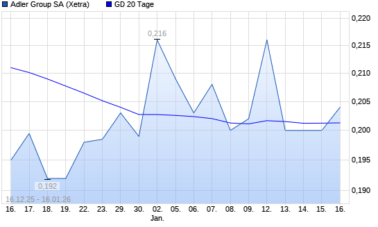 Mit dem Rücksetzer auf 0,19 EUR hat die Adler-Aktie am 15.01.2026 die 20-Tage-Linie nach unten gekreuzt.Die Adler-Aktie befindet sich seit dem 27.11.2025 im langfristigen Abwärtstrend und ...weiterlesen