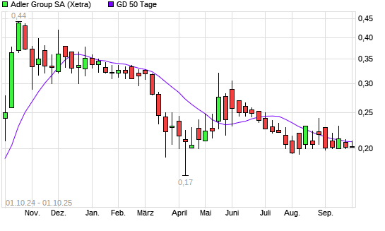 Mit dem Rücksetzer auf 0,20 EUR hat die Adler-Aktie am 30.09.2025 die 50-Tage-Linie nach unten gekreuzt.Die Adler-Aktie befindet sich seit dem 10.03.2025 im langfristigen Abwärtstrend und ...weiterlesen