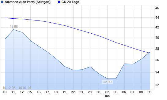 Mit dem Anstieg auf 38,74 EUR hat die Advance Auto Parts-Aktie am 22.01.2026 die 38-Tage-Linie nach oben gekreuzt.Die Advance Auto Parts-Aktie befindet sich seit dem 10.12.2025 im langfristigen ...weiterlesen