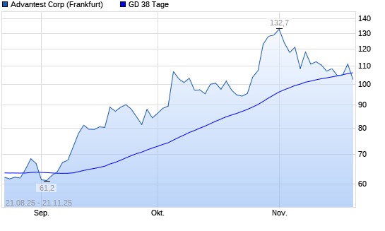 Mit dem Anstieg auf 111,00 EUR hat die Advantest-Aktie am 20.11.2025 die 38-Tage-Linie nach oben gekreuzt.Die Advantest-Aktie befindet sich seit dem 06.06.2025 im langfristigen Aufwärtstrend ...weiterlesen