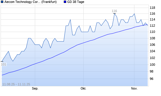 Mit dem Anstieg auf 113,00 EUR hat die Aecom Technology Corp Delawa-Aktie am 10.11.2025 die 38-Tage-Linie nach oben gekreuzt.Die Aecom Technology Corp Delawa-Aktie befindet sich seit dem 05.08.2025 ...weiterlesen