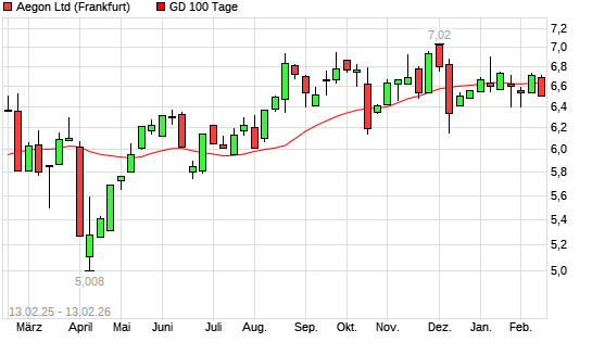 Mit dem Rücksetzer auf 6,50 EUR hat die Aegon-Aktie am 12.02.2026 die 100-Tage-Linie nach unten gekreuzt.Die Aegon-Aktie befindet sich seit dem 28.01.2026 im langfristigen Aufwärtstrend ...weiterlesen