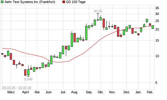 Mit dem Rücksetzer auf 20,48 EUR hat die Aehr Test Systems-Aktie am 02.02.2026 die 100-Tage-Linie nach unten gekreuzt.Die Aehr Test Systems-Aktie befindet sich seit dem 10.07.2025 im langfristigen ...weiterlesen