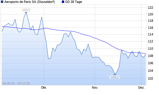Mit dem Anstieg auf 108,80 EUR hat die Aeroports de Paris-Aktie am 03.12.2024 die 38-Tage-Linie nach oben gekreuzt.Die Aeroports de Paris-Aktie befindet sich seit dem 01.08.2024 im langfristigen ...weiterlesen