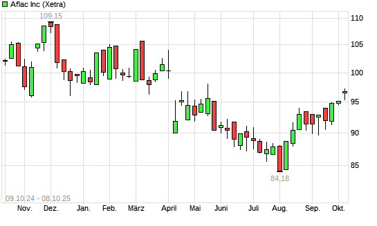 Mit dem Anstieg auf 96,88 EUR hat die Aflac-Aktie (ISIN US0010551028) am 07.10.2025 ein neues 6-Monats-Hoch erreicht und damit den Kurs vom 06.10.2025 eingestellt.Die Aflac-Aktie befindet sich ...weiterlesen