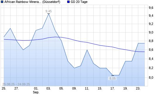 Mit dem Anstieg auf 8,65 EUR hat die African Rainbow Minerals-Aktie am 23.09.2025 die 20-Tage-Linie nach oben gekreuzt.Die African Rainbow Minerals-Aktie befindet sich seit dem 19.09.2025 im ...weiterlesen