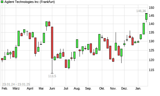 Mit dem Anstieg auf 146,22 EUR hat die Agilent Technologies-Aktie (ISIN US00846U1016) am 22.01.2025 ein neues 12-Monats-Hoch erreicht und damit den Kurs vom 20.01.2025 eingestellt.Die Agilent ...weiterlesen