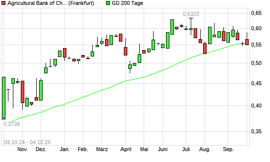 Mit dem Rücksetzer auf 0,55 EUR hat die Agricultural Bank of China-Aktie am 03.10.2025 die 200-Tage-Linie nach unten gekreuzt.Die Agricultural Bank of China-Aktie befand sich seit dem 29.09.2025 ...weiterlesen