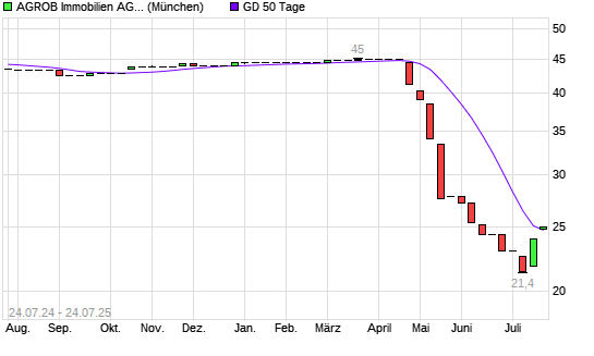 Mit dem Rücksetzer auf 24,00 EUR hat die Agrob VZ-Aktie am 23.07.2025 die 50-Tage-Linie nach unten gekreuzt.Die Agrob VZ-Aktie befindet sich seit dem 22.04.2025 im langfristigen Abwärtstrend ...weiterlesen