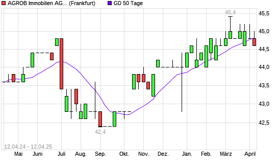Mit dem Rücksetzer auf 44,60 EUR hat die Agrob VZ-Aktie am 11.04.2025 die 50-Tage-Linie nach unten gekreuzt.Die Agrob VZ-Aktie befindet sich seit dem 15.11.2024 im ...weiterlesen