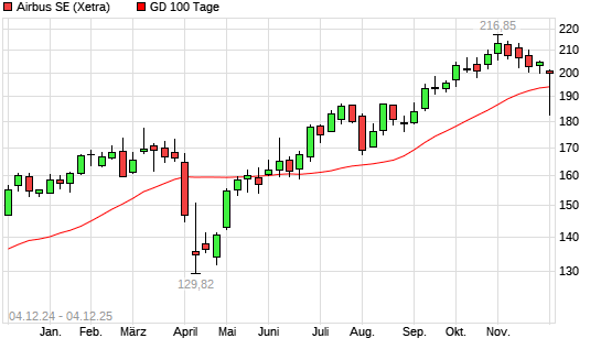 Mit dem Anstieg auf 199,90 EUR hat die Airbus-Aktie am 03.12.2025 die 100-Tage-Linie nach oben gekreuzt.Die Airbus-Aktie befindet sich seit dem 30.04.2025 im langfristigen Aufwärtstrend und ...weiterlesen