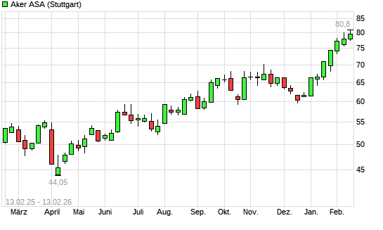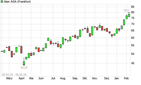 Mit dem Anstieg auf 80,20 EUR hat die Aker ASA-Aktie (ISIN NO0010234552) am 12.02.2026 ein neues 3-Jahres-Hoch erreicht und damit den Kurs vom 10.02.2026 eingestellt.Die Aker ASA-Aktie befindet ...weiterlesen