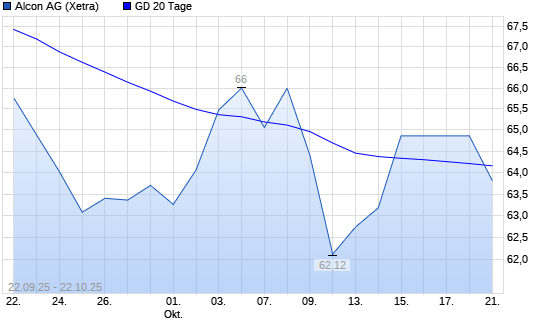 Mit dem Anstieg auf 65,14 EUR hat die Alcon-Aktie am 21.10.2025 die 20-Tage-Linie nach oben gekreuzt.Die Alcon-Aktie befindet sich seit dem 14.05.2025 im langfristigen Abwärtstrend und hat in ...weiterlesen