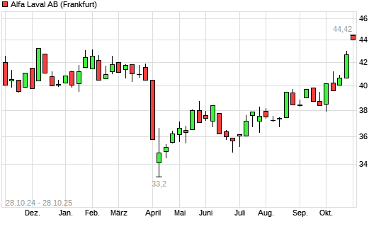 Mit dem Anstieg auf 44,42 EUR hat die Alfa Laval-Aktie (ISIN SE0000695876) am 27.10.2025 ein neues All-Time-High erreicht und damit den Kurs vom 30.09.2024 eingestellt.Die Alfa Laval-Aktie befindet ...weiterlesen