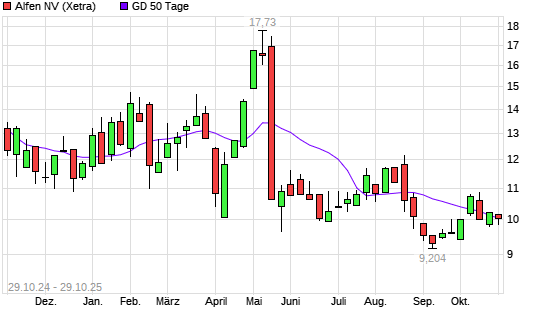 Mit dem Rücksetzer auf 9,83 EUR hat die Alfen-Aktie am 28.10.2025 die 50-Tage-Linie nach unten gekreuzt.Die Alfen-Aktie befindet sich seit dem 13.05.2025 im langfristigen ...weiterlesen