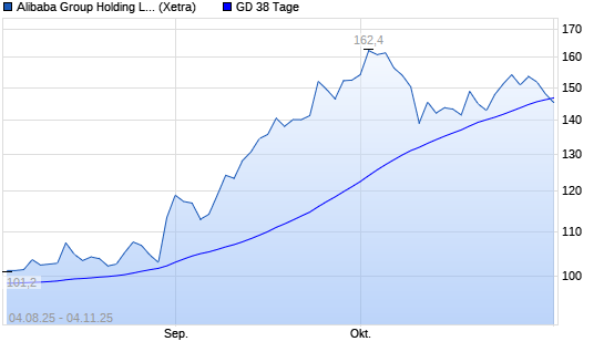 Mit dem Rücksetzer auf 145,40 EUR hat die Alibaba-Aktie am 03.11.2025 die 38-Tage-Linie nach unten gekreuzt.Die Alibaba-Aktie befindet sich seit dem 17.07.2025 im langfristigen Aufwärtstrend ...weiterlesen