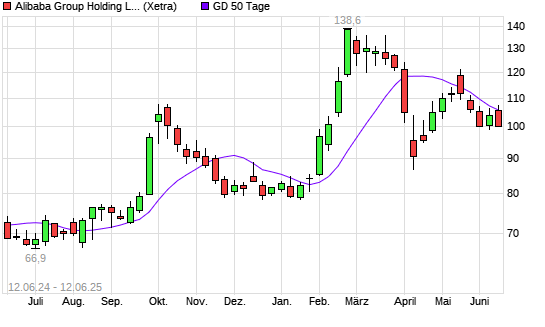 Mit dem Rücksetzer auf 104,80 EUR hat die Alibaba-Aktie am 11.06.2025 die 50-Tage-Linie nach unten gekreuzt.Die Alibaba-Aktie befindet sich seit dem 09.04.2025 im langfristigen Aufwärtstrend ...weiterlesen