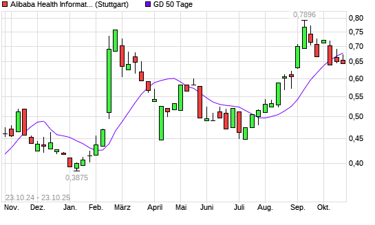 Mit dem Rücksetzer auf 0,66 EUR hat die Alibaba Health Information Technology-Aktie am 22.10.2025 die 50-Tage-Linie nach unten gekreuzt.Die Alibaba Health Information Technology-Aktie befindet ...weiterlesen