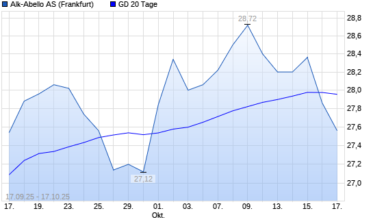 Mit dem Rücksetzer auf 27,86 EUR hat die Alk Abello-Aktie am 16.10.2025 die 20-Tage-Linie nach unten gekreuzt.Die Alk Abello-Aktie befindet sich seit dem 06.05.2025 im langfristigen Aufwärtstrend ...weiterlesen