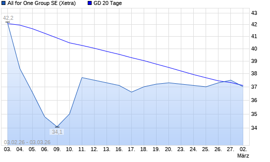 Mit dem Rücksetzer auf 37,20 EUR hat die All for One Group-Aktie am 02.03.2026 die 20-Tage-Linie nach unten gekreuzt.Die All for One Group-Aktie befindet sich seit dem 02.07.2025 ...weiterlesen