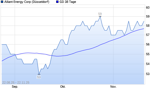 Mit dem Anstieg auf 58,00 EUR hat die Alliant Energy-Aktie am 21.11.2025 die 38-Tage-Linie nach oben gekreuzt.Die Alliant Energy-Aktie befindet sich seit dem 25.09.2025 im langfristigen Aufwärtstrend ...weiterlesen