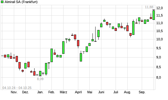 Mit dem Anstieg auf 11,84 EUR hat die Almirall-Aktie (ISIN ES0157097017) am 03.10.2025 ein neues 3-Jahres-Hoch erreicht und damit den Kurs vom 02.10.2025 eingestellt.Die Almirall-Aktie befindet ...weiterlesen