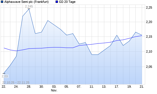 Mit dem Rücksetzer auf 2,15 EUR hat die Alphawave IP-Aktie am 21.11.2025 die 20-Tage-Linie nach unten gekreuzt.Die Alphawave IP-Aktie befindet sich seit dem 30.04.2025 ...weiterlesen