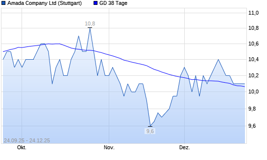 Mit dem Rücksetzer auf 9,95 EUR hat die Amada-Aktie am 23.12.2025 die 38-Tage-Linie nach unten gekreuzt.Die Amada-Aktie befindet sich seit dem 26.06.2025 im ...weiterlesen